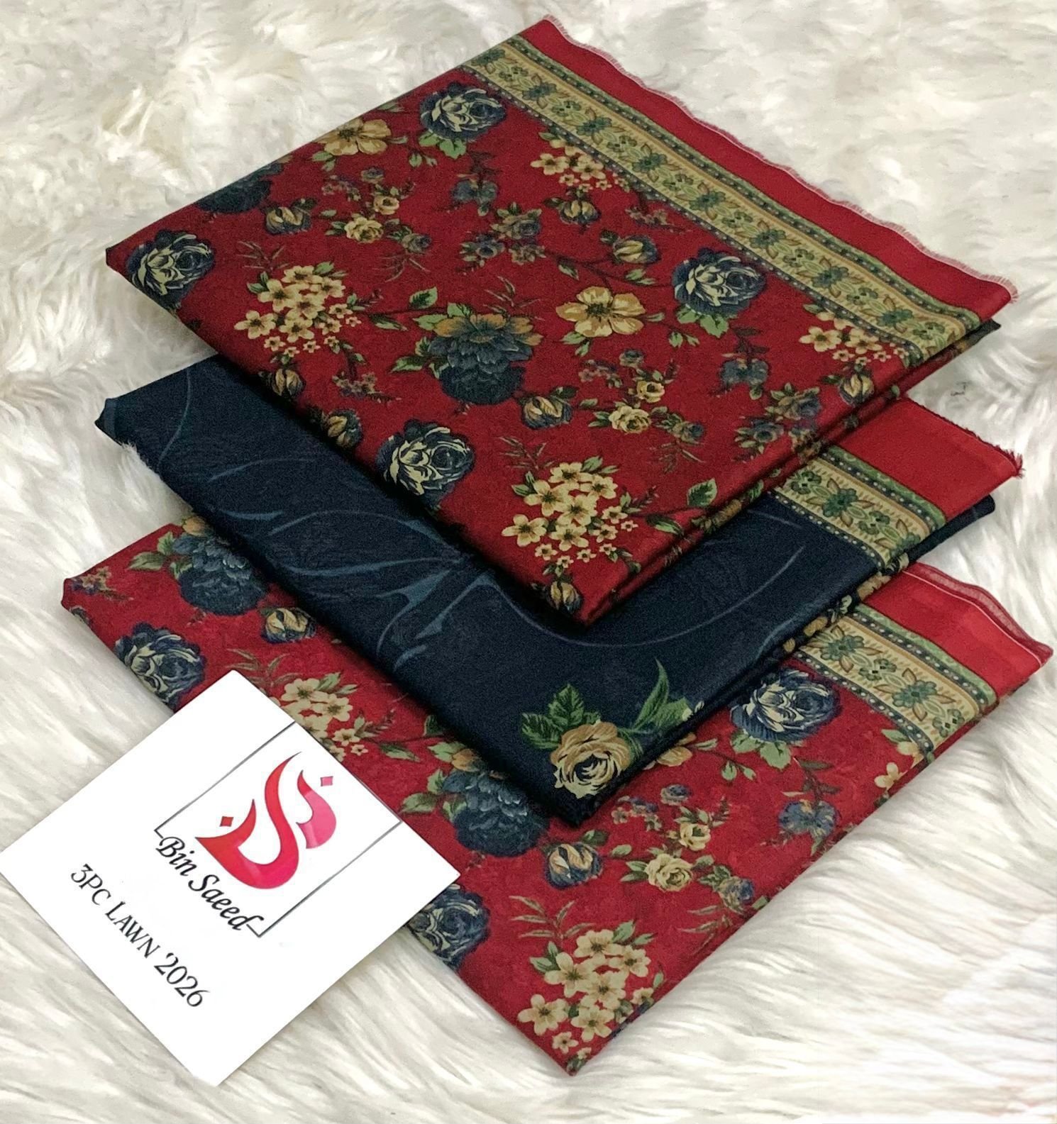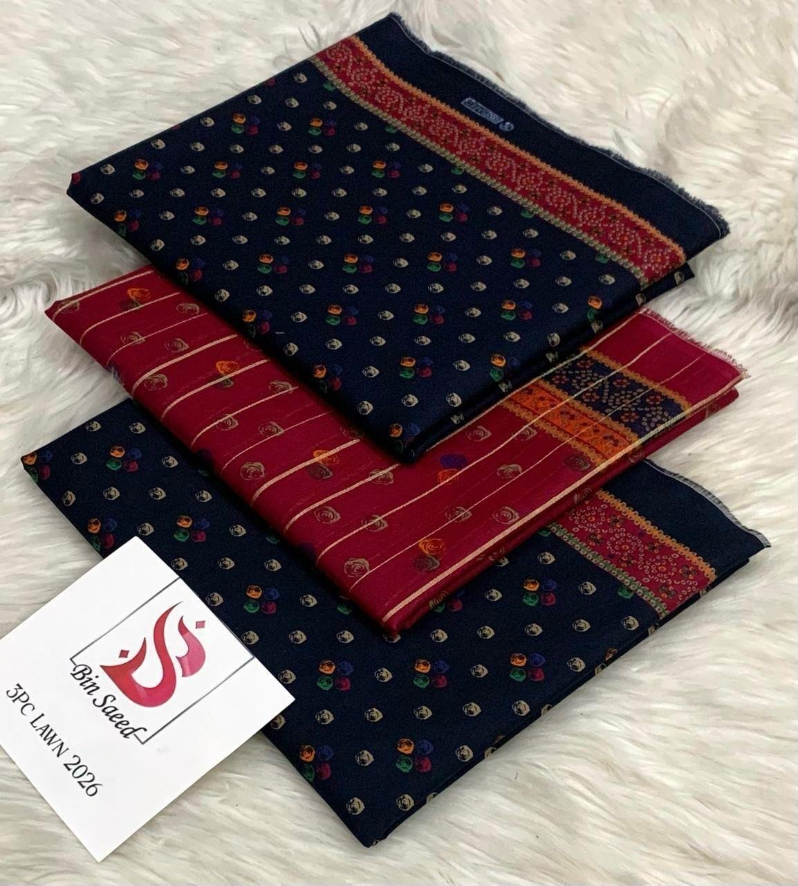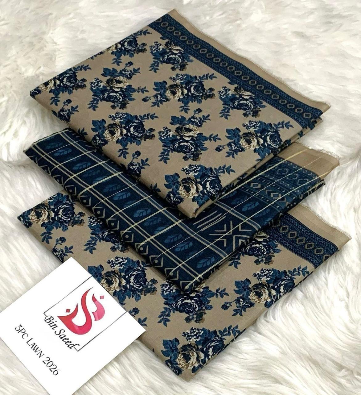 Add timeless beauty to your everyday wardrobe with the Bin Saeed Lawn 3PC Collection, featuring 100% original outlet stock designed with comfort and elegance in mind. Crafted from fine-quality lawn fabric, this set feels soft, breathable, and gentle on the skin — perfect for warm weather.