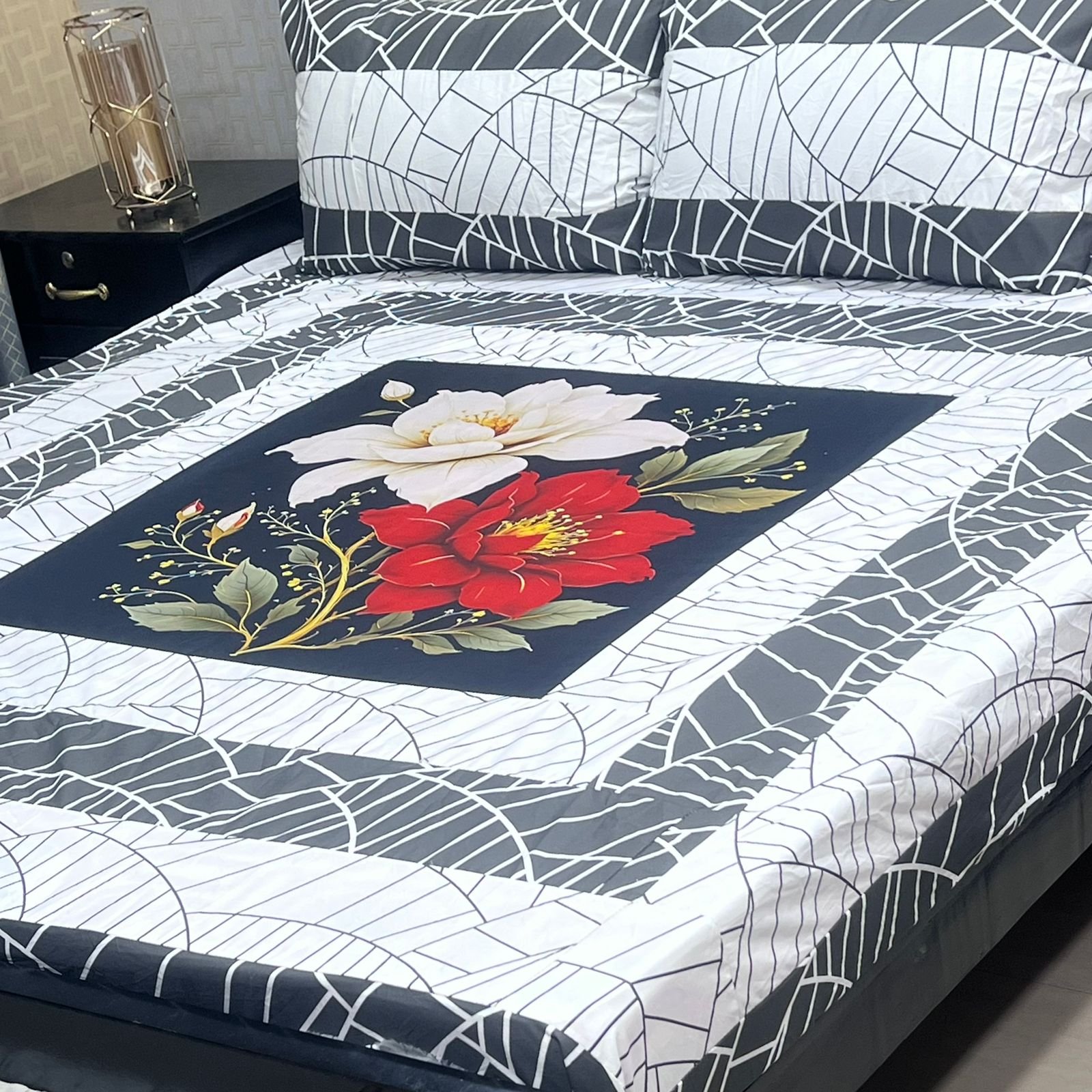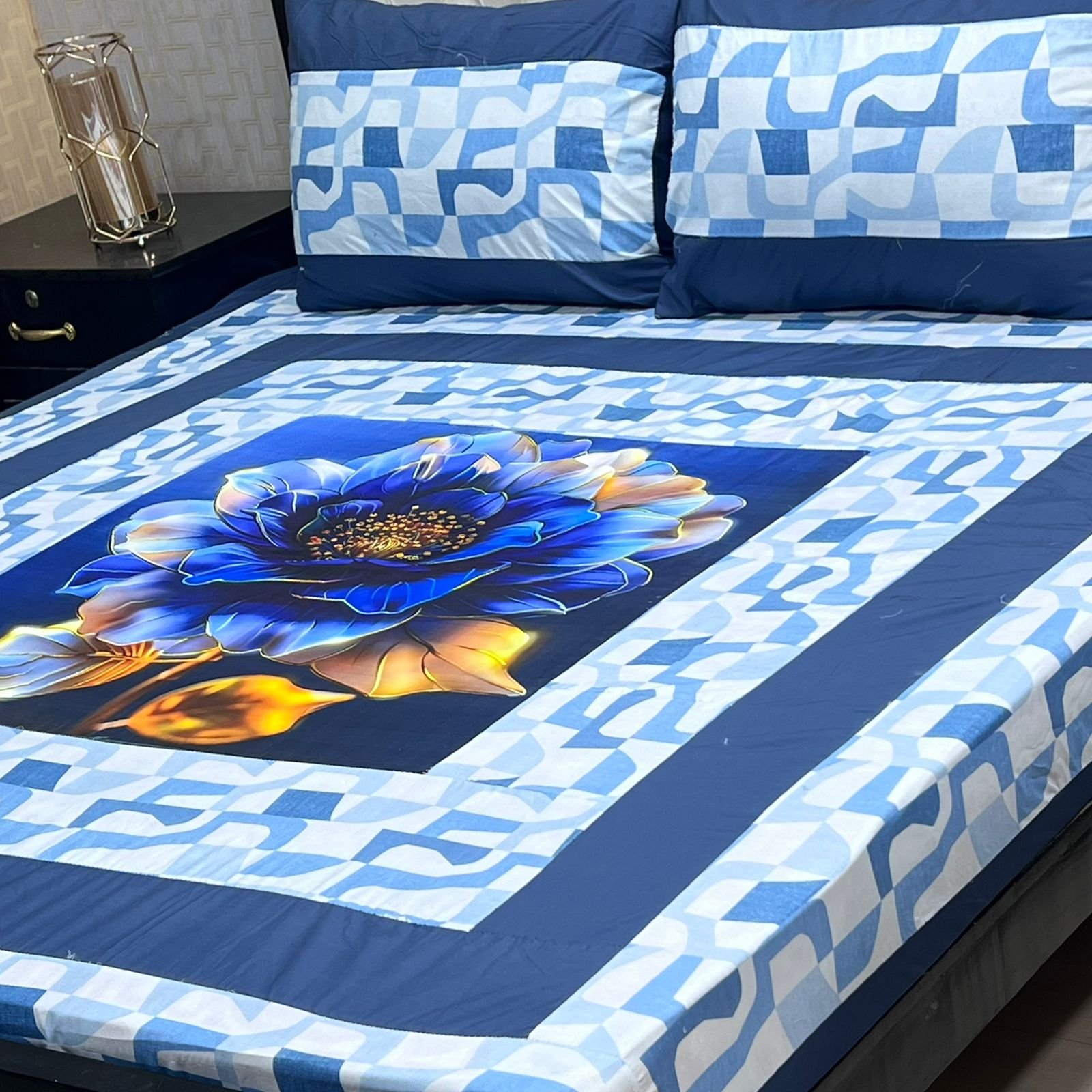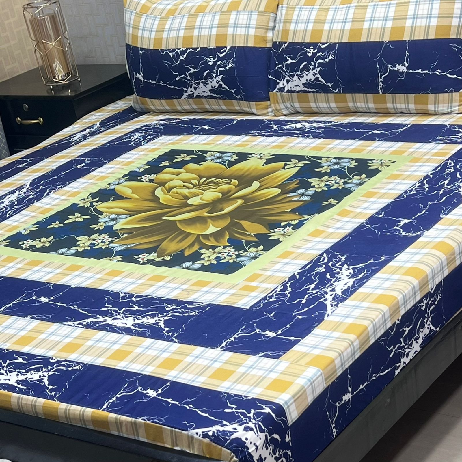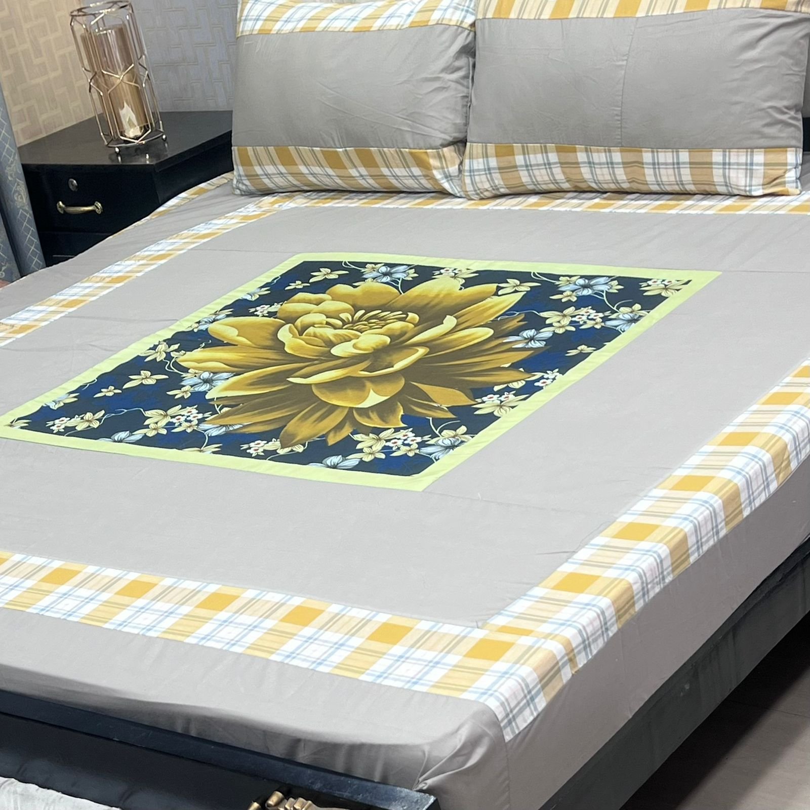 Digital Gold Panel Bedsheet – 3PC King Size Set ✨