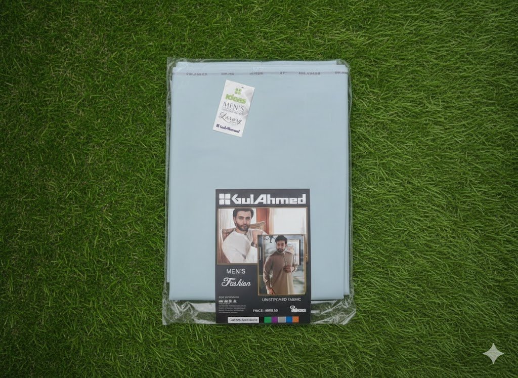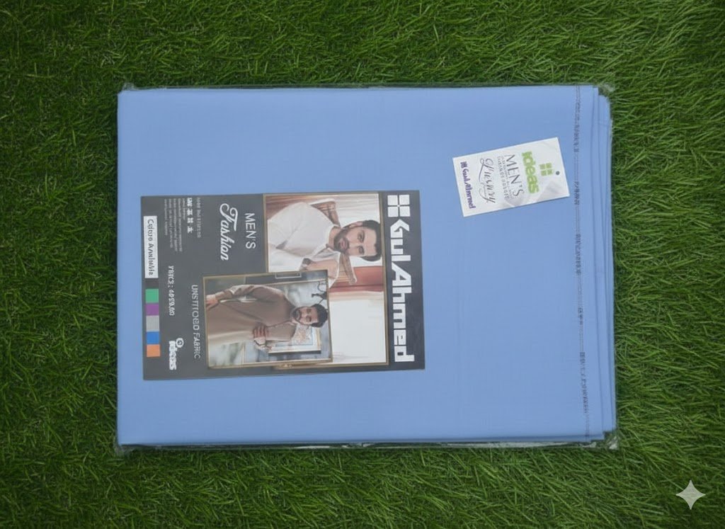 Original Gul Ahmed wash & wear men fabric. Soft, wrinkle-resistant, and breathable. Available in 4m, 4.5m, and 5m sizes.